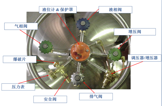 然后加入液氮后測重,一立升液氮重為0.8公斤加上空罐的重量得出滿罐時的重量,減去使用過后現有秤重,就是應補充的的容量??梢杂脤S玫囊何怀邷y液位,另一種簡便的方法是找一根干凈的木棒插入液氮內數秒鐘,將木棒迅速取出暴露在空氣中,插入液氮的部份因溫度低而結成白霜,很易容檢測罐內液氮的存量。
